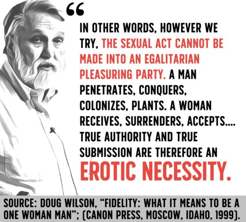 And it is far from alone. As you know from your attentive following of Pastor Wilson’s writing, Pastor Wilson has firmly and frequently spoken out against sexual abuse within marriage.